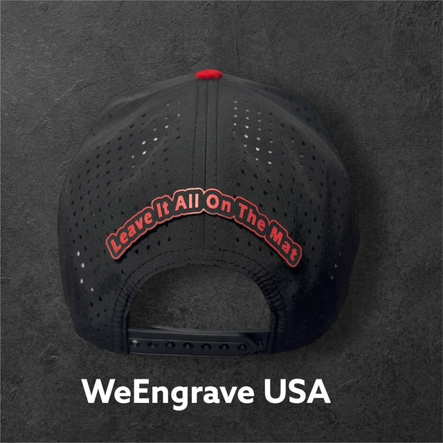 We are providing Free Patch for the back of the hat.  "Leave It All On The Mat".  If you don't want this, send us an email saying you decline the back hat patch at the time of your order.