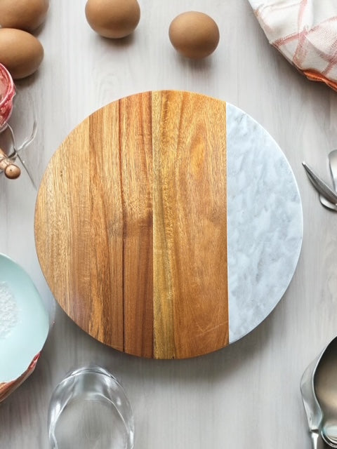 Acacia Wood/Marble Lazy Susan 12'' diameter